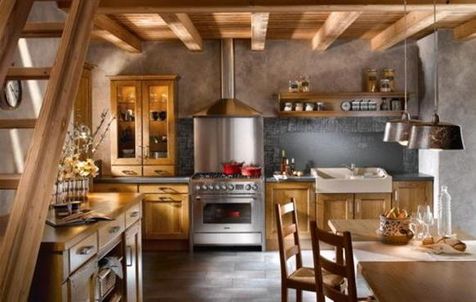Стиль рустик выделяется среди всех остальных способов оформления помещений. Его отличительной особенностью является использование только натуральной древесины, обработка которой была минимальной. Кухня в стиле рустик имеет внешний вид самостоятельно изготовленной мебели в мастерской вашим мужем или отцом. Неповторимыми фасадами мебели можно любоваться и восхищаться, ведь на нем рисунки, созданные самой природой – годовые кольца деревьев, а не пластик или стекло. Необходимо только выбрать качественный массив. Для оформления кухни в этом стиле можно использовать всем известную сосну или благородный дуб, подойдет также вишня или бук, а возможно вам захочется экзотики, тогда вы приобретете какой-нибудь ливанский кедр.
