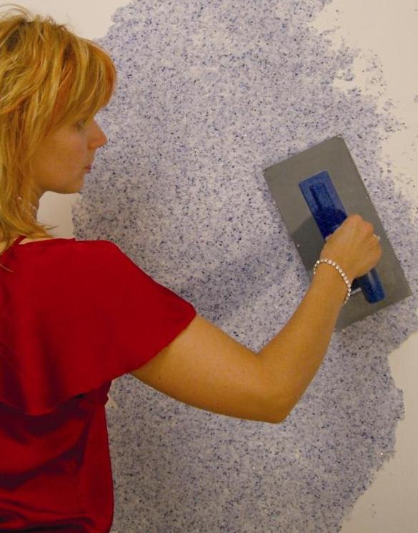 Это не только красивое покрытие, «жидкие обои» изготавливают из натурального хлопка с добавлением шелковых нитей, и это очень выгодно отличает их от других видов обоев. Покрытие легко реставрировать и можно заменить отдельные участки, поэтому мелкие детские шалости мне теперь не страшны!