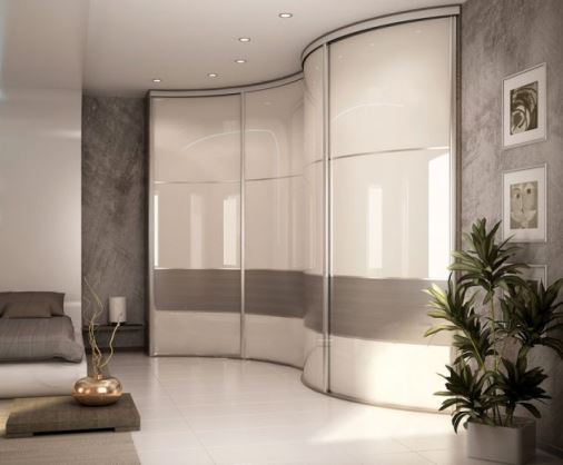 Выдвижная штанга для радиусного шкафа-купе – удобное приспособление для хранения вещей на верхнем уровне, крепится такая штанга снизу к полке. Полезным дополнением может стать брючница, с помощью которой юбки и брюки будут находиться в аккуратном состоянии. Не менее оригинальным наполнением для вашего шкафа станут выдвижные корзины, в которых можно хранить разнообразные вещи, чтобы не занимать много места на полках.